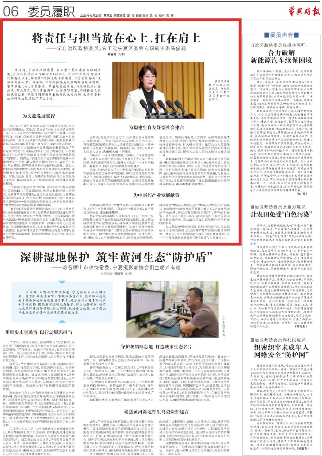 從文旅發(fā)展到生育問題,再到中醫(yī)藥產(chǎn)業(yè),馬俊超始終以飽滿的熱情、扎實的調(diào)研履行著政協(xié)委員的職責(zé)。她表示,今后將繼續(xù)深入基層,傾聽群眾呼聲,用一件件有分量的提案踐行“責(zé)任委員”,為發(fā)展添力。